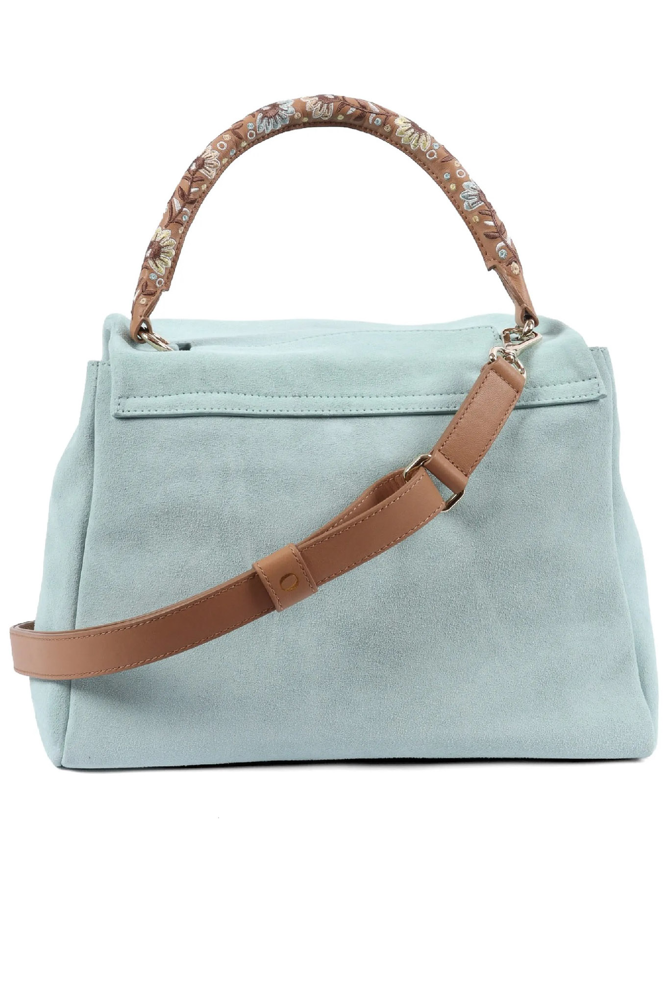 Sveva Peach Flowers Midi suede leather shoulder bag with strap