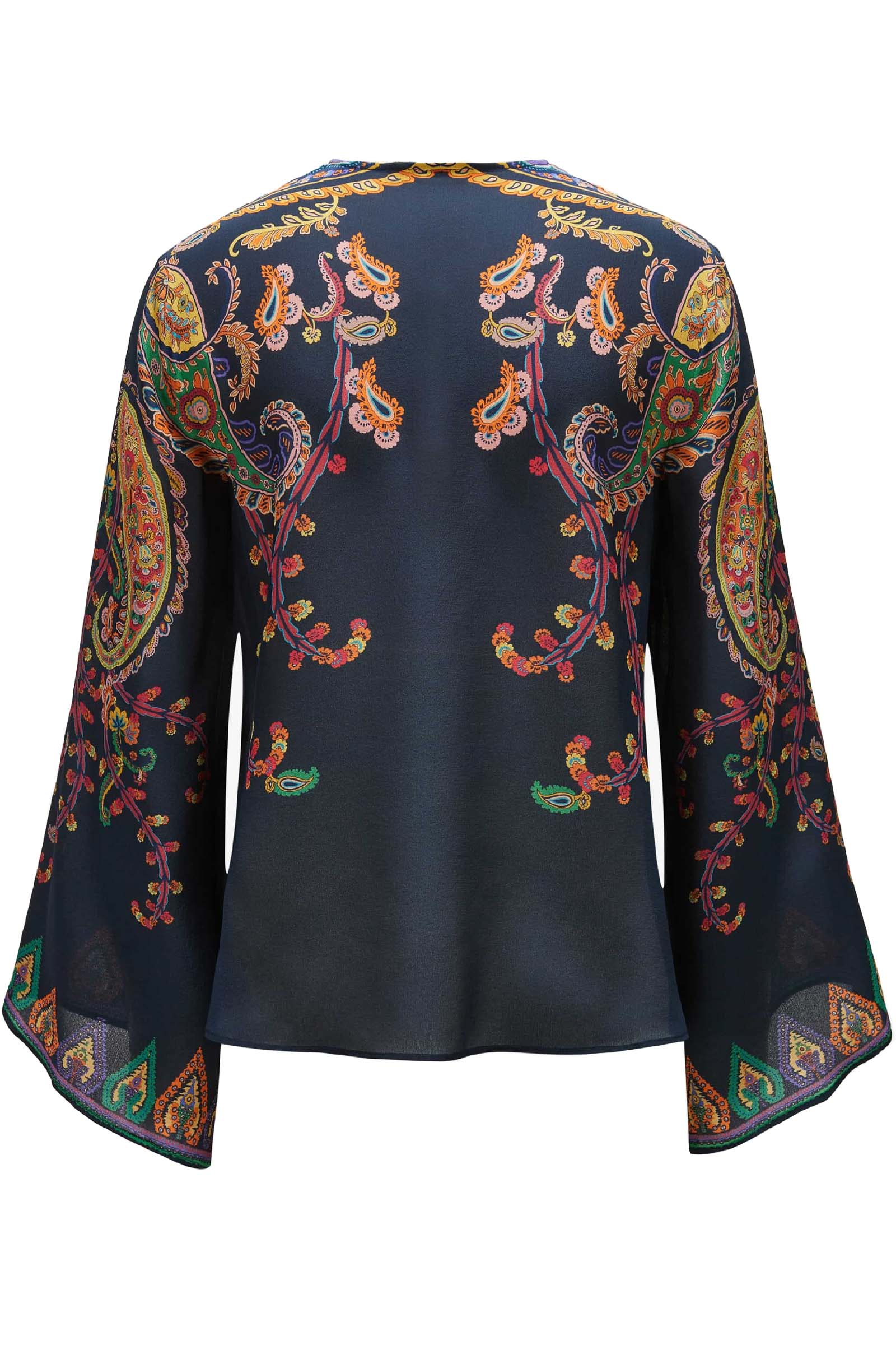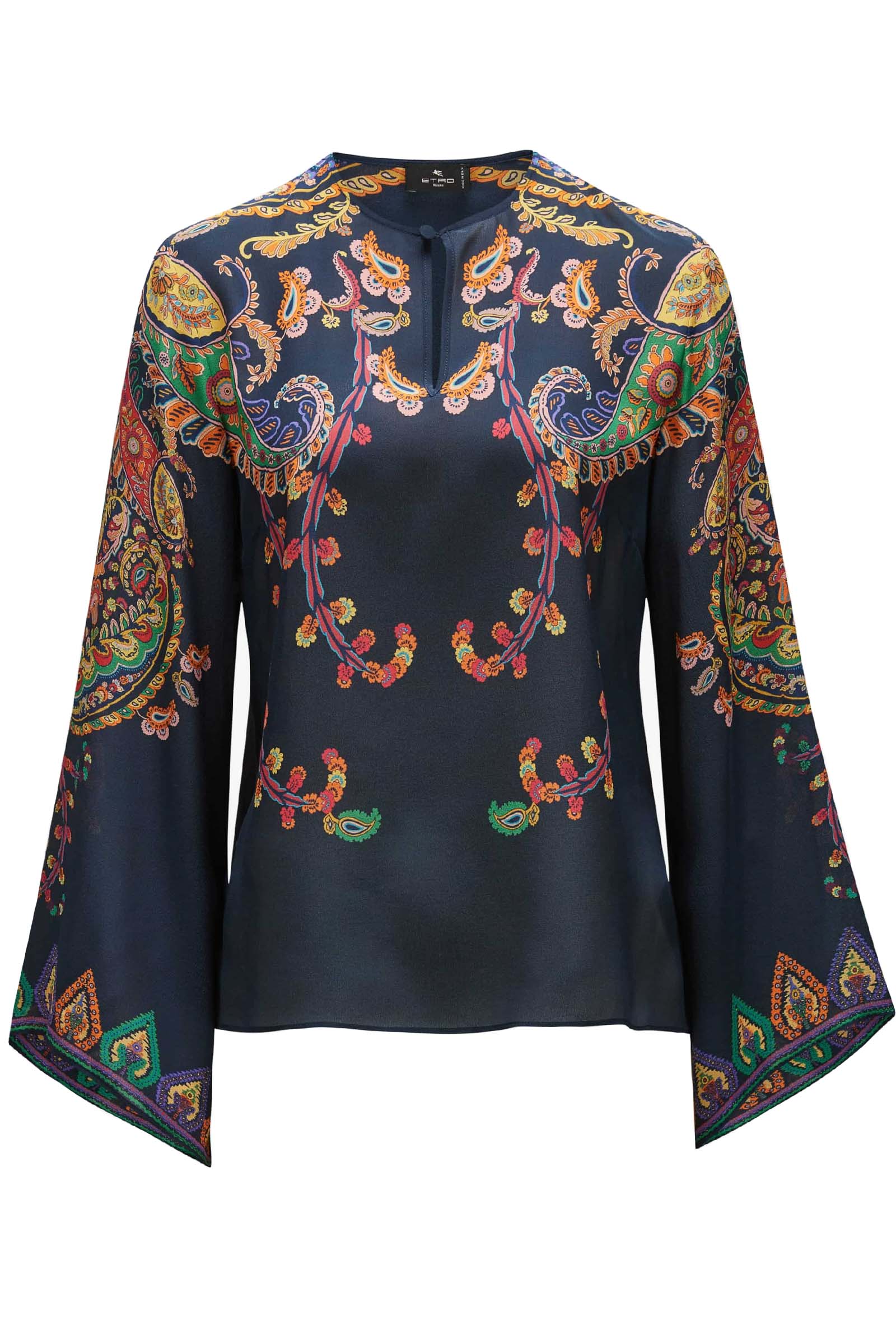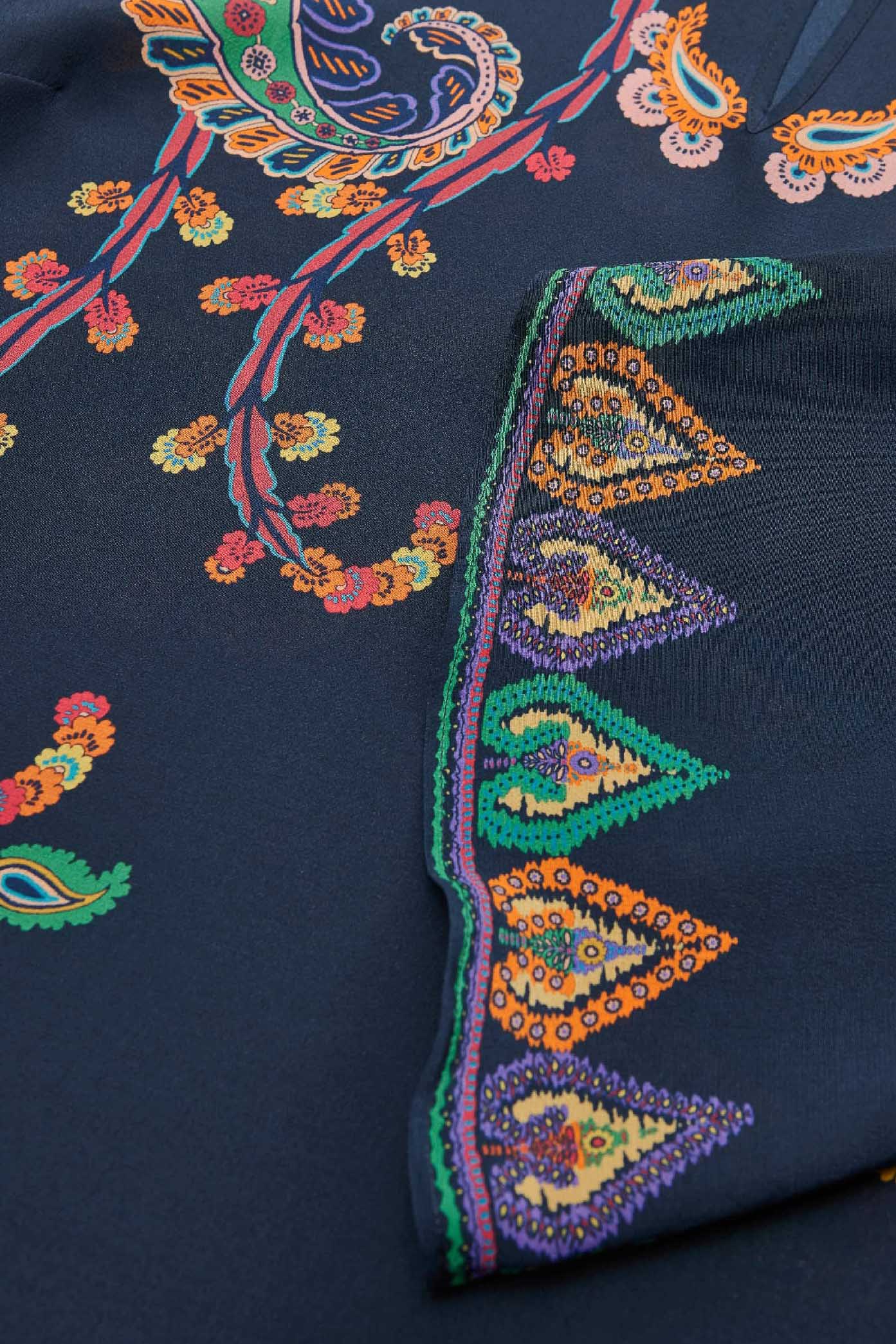 Blusa in seta con stampa piazzata paisley floreale